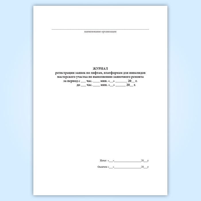 Журнал регистрации заявок по лифтам, платформам для инвалидов мастерского участка по выполнению заявочного ремонта в Ачинске купить