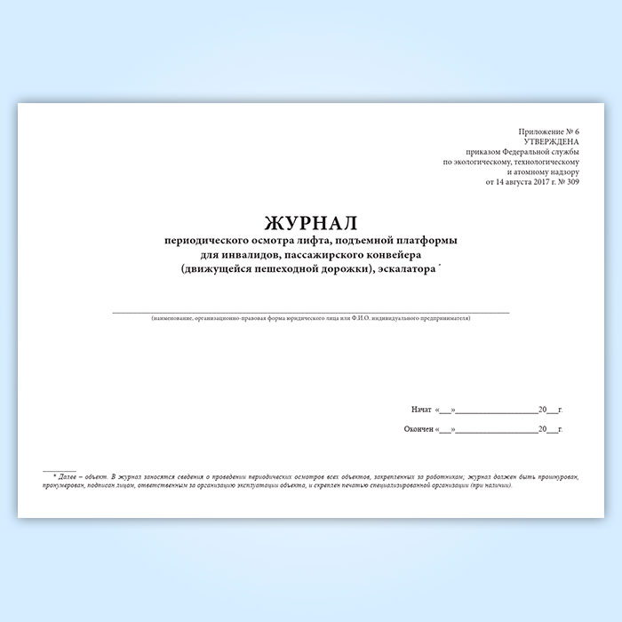 Журнал периодического осмотра лифта, подъемной платформы для инвалидов, пассажирского конвейера (движущейся пешеходной дорожки), эскалатора в Ачинске купить