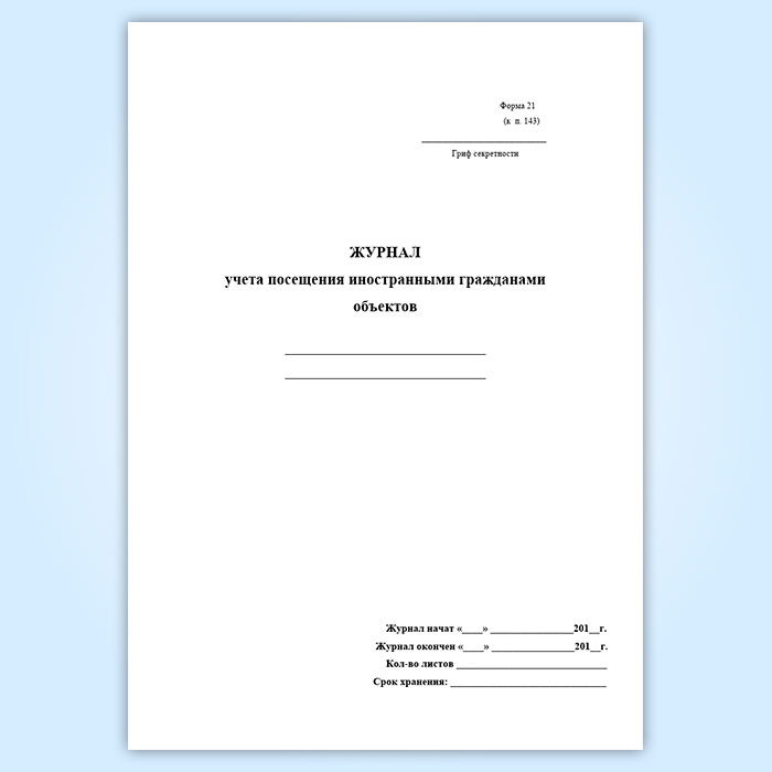 Журнал учета посещения иностранными гражданами объектов (форма 21) в Ачинске купить