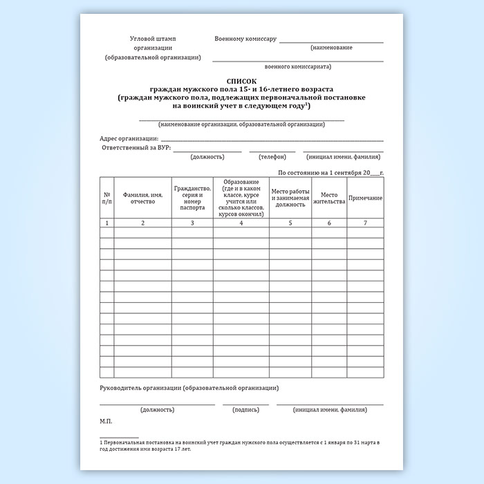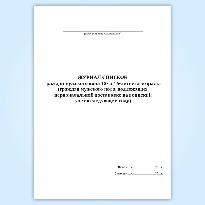 Журнал списков граждан мужского пола 15- и 16-летнего возраста (граждан мужского пола, подлежащих первоначальной постановке на воинский учет в следующем году) в Ачинске купить