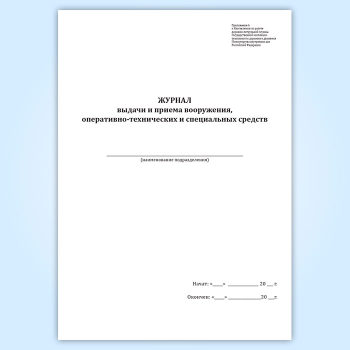 Журнал выдачи и приема вооружения, оперативно-технических и специальных средств в Ачинске купить