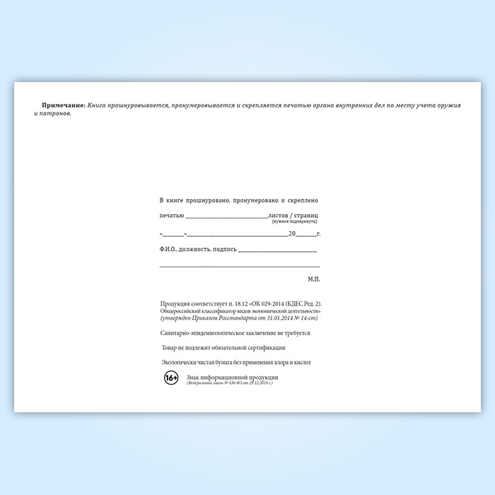 Книга номерного учета и персонального закрепления оружия и патронов в Ачинске купить