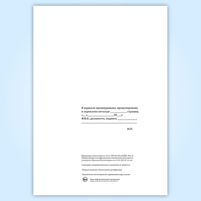 Вы получаете печатную продукцию прошнурованной и c местом для вашей печати в соответствии с действующими нормативными документами:
