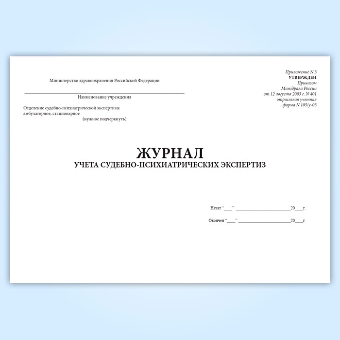Журнал учета судебно-психиатрических экспертиз (форма 105/у-03) в Ачинске купить