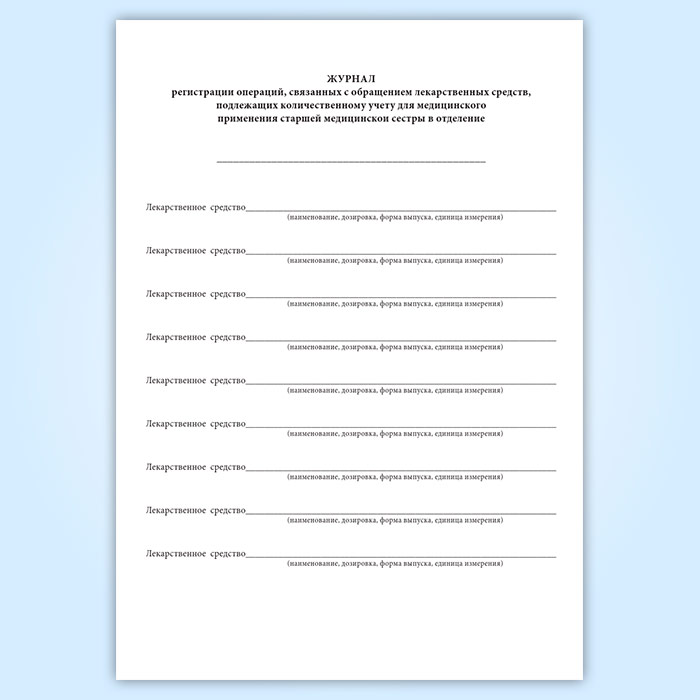 Журнал регистрации операций, связанных с обращением лекарственных средств, подлежащих количественному учету для медицинского применения старшей медицинской сестры в отделение в Ачинске купить