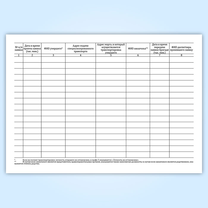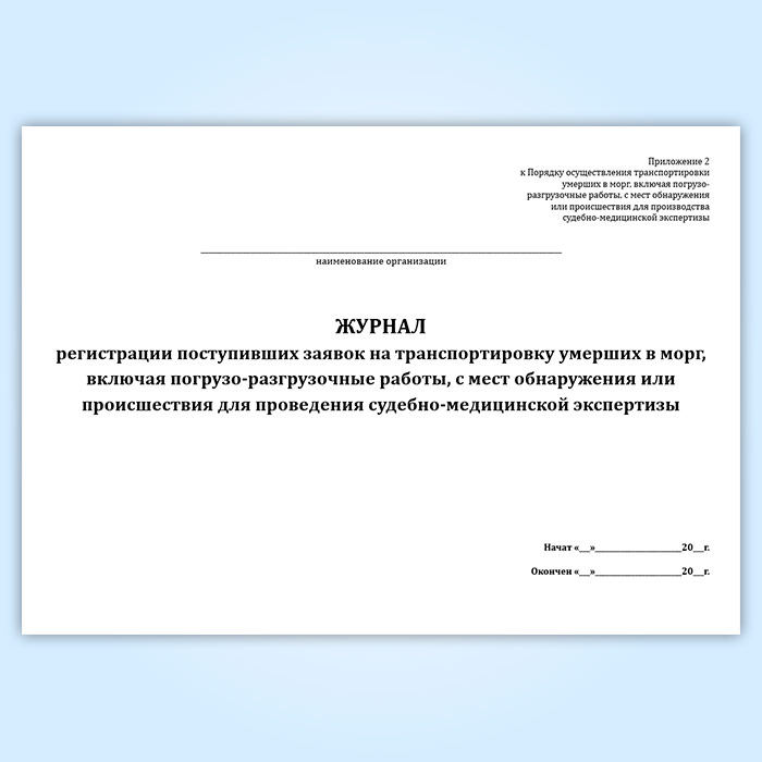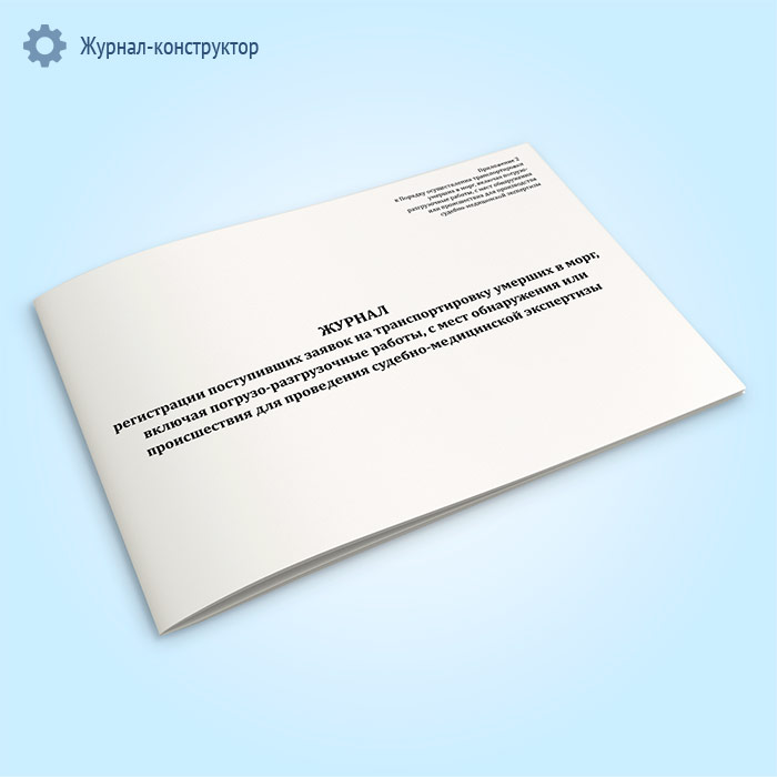 Журнал регистрации поступивших заявок на транспортировку умерших в морг, включая погрузо-разгрузочные работы, с мест обнаружения или происшествия для проведения судебно-медицинской экспертизы в Ачинске купить