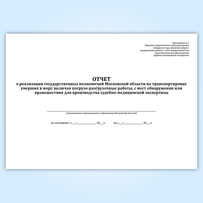 Отчет о реализации государственных полномочий Московской области по транспортировке умерших в морг, включая погрузо-разгрузочные работы, с мест обнаружения или происшествия для производства судебно-медицинской экспертизы в Ачинске купить