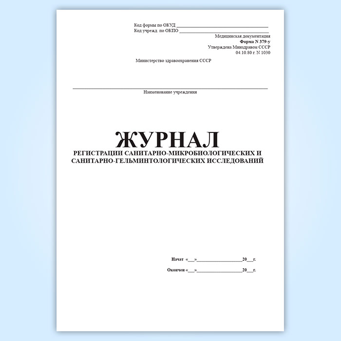 Журнал регистрации санитарно-микробиологических и санитарно-гельминтологических исследований (форма 379-у) в Ачинске купить