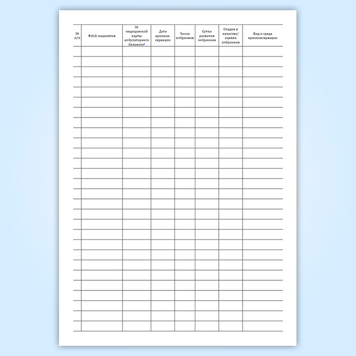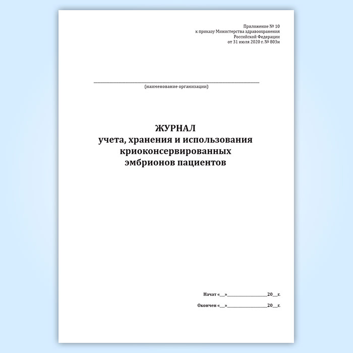 Журнал учета, хранения и использования криоконсервированных эмбрионов пациентов в Ачинске купить