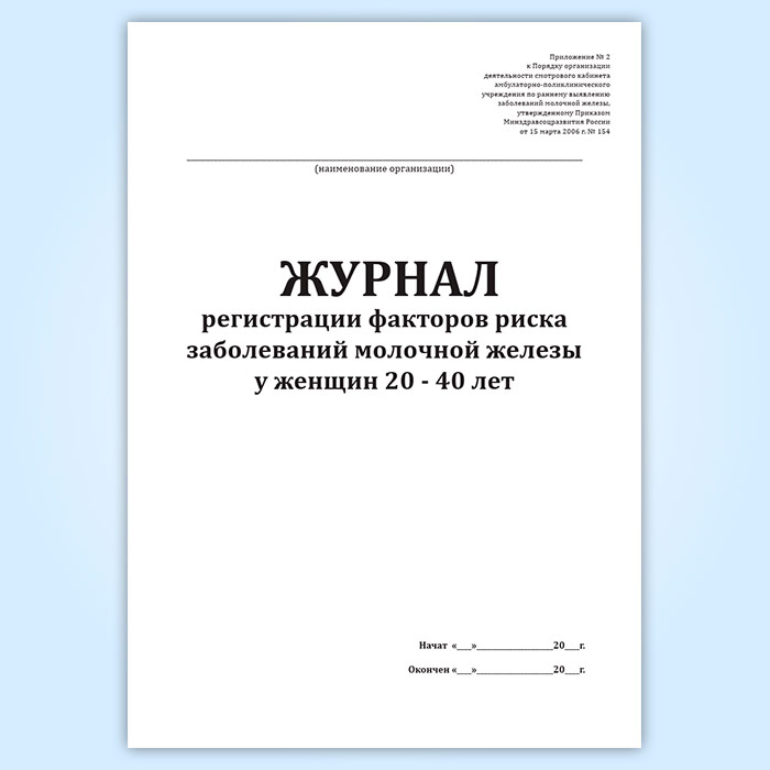 Журнал регистрации факторов риска заболеваний молочной железы у женщин 20-40 лет в Ачинске купить
