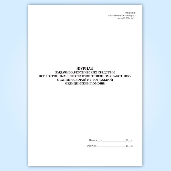 Журнал выдачи наркотических средств и психотропных веществ ответственному работнику станции скорой и неотложной медицинской помощи в Ачинске купить