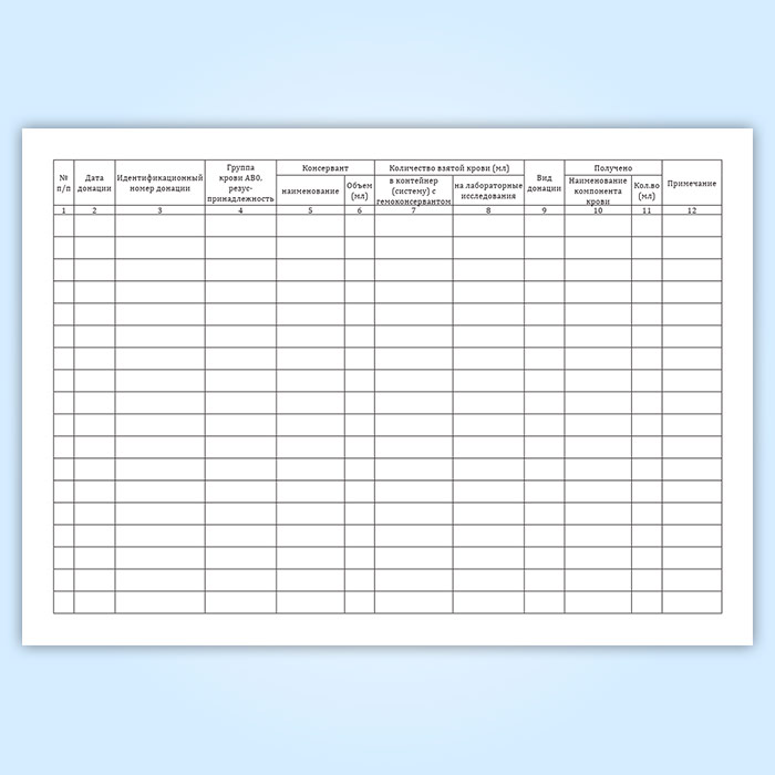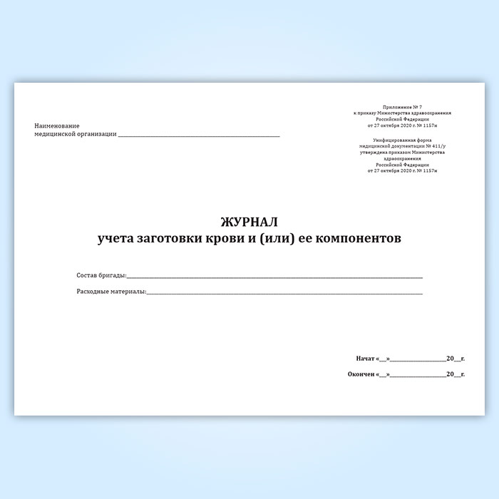 Журнал учета заготовки крови и (или) ее компонентов (форма № 411/у) в Ачинске купить