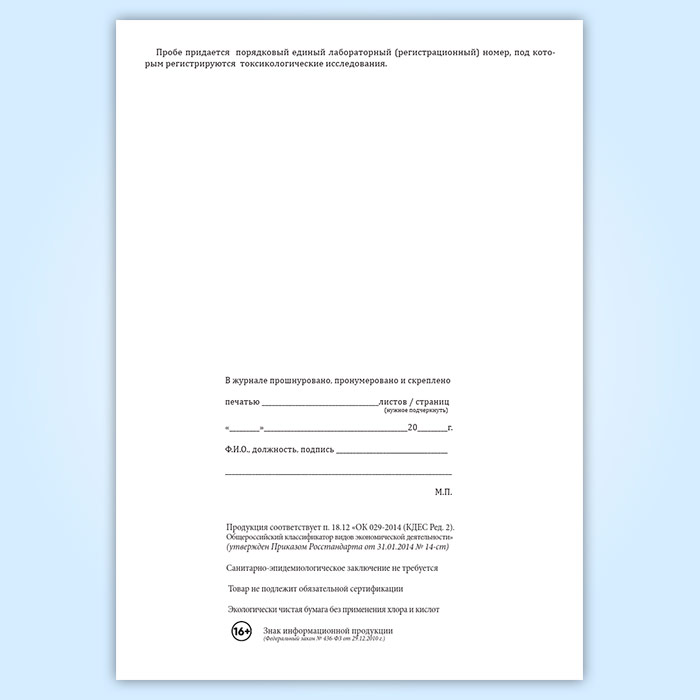 Вы получаете печатную продукцию прошнурованной и c местом для вашей печати в соответствии с действующими нормативными документами: