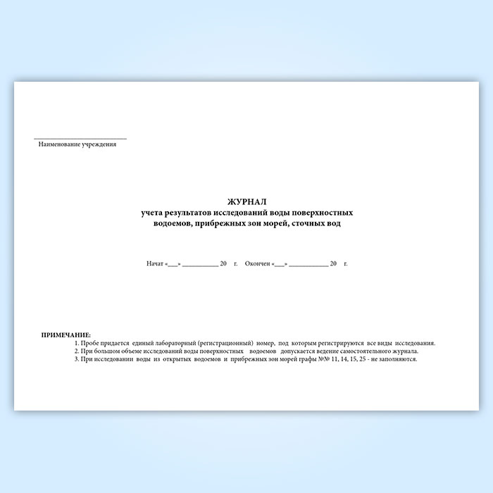 Журнал учета результатов исследований воды поверхностных водоемов, прибрежных зон морей, сточных вод (форма № 324-у) в Ачинске купить
