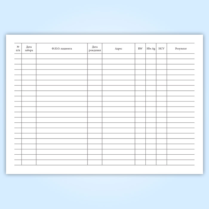 Журнал учета исследований образцов сыворотки на RW, Hbs, Ag, HCV в Ачинске купить