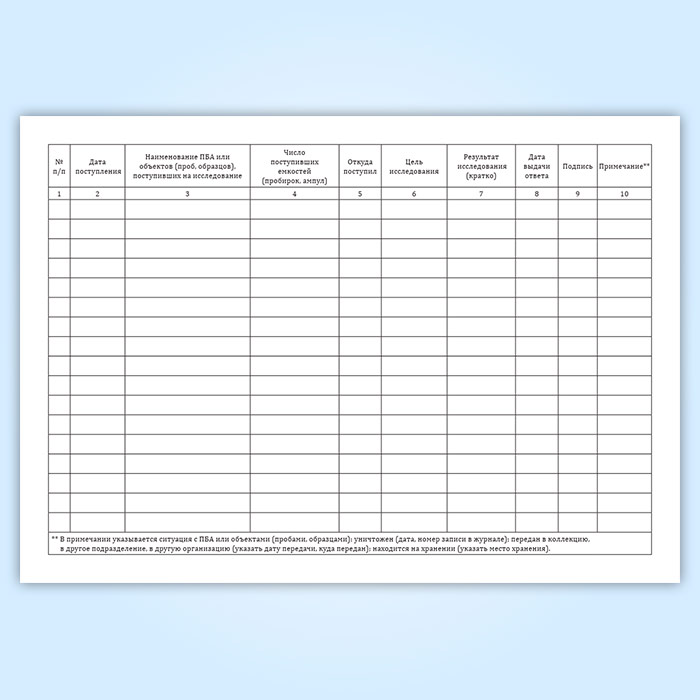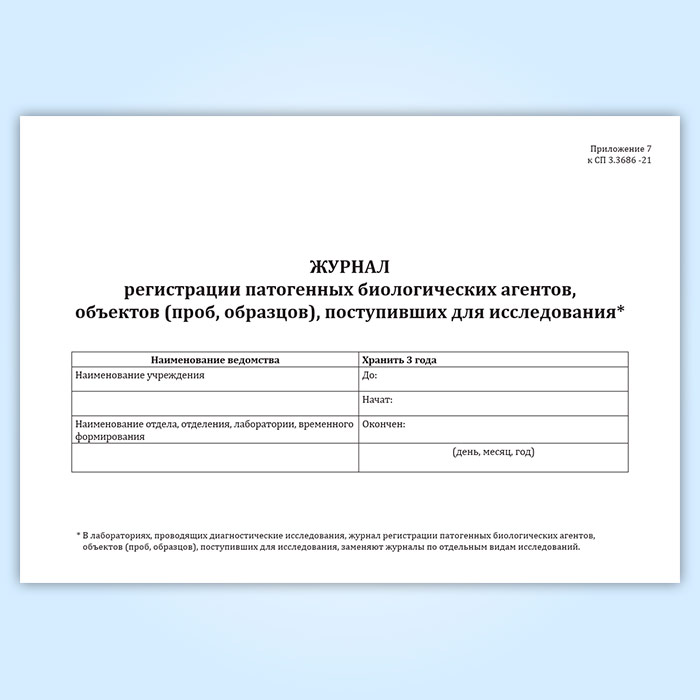 Журнал регистрации патогенных биологических агентов, объектов (проб, образцов), поступивших для исследования в Ачинске купить
