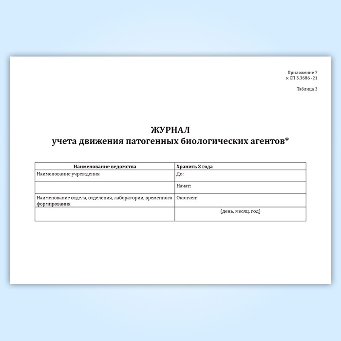 Журнал учета движения патогенных биологических агентов (СанПиН 3.3686-21) в Ачинске купить