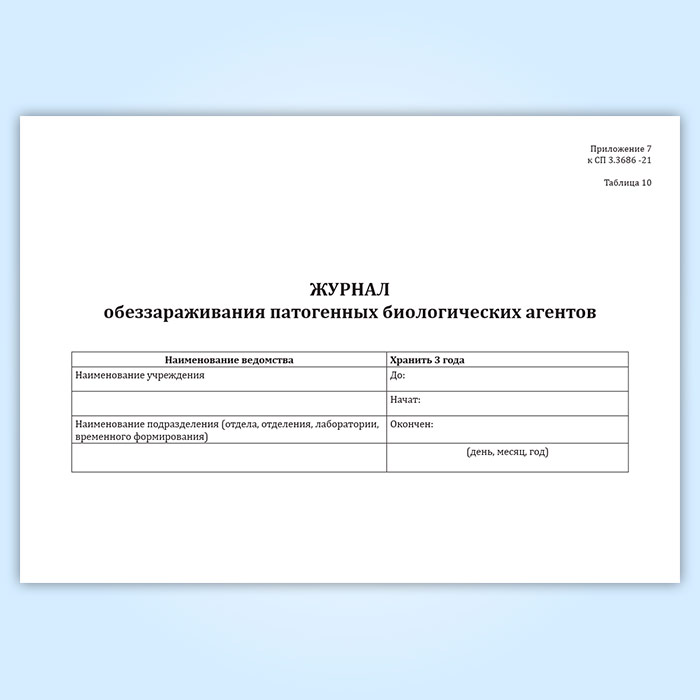 Журнал обеззараживания патогенных биологических агентов (СанПиН 3.3686-21) в Ачинске купить