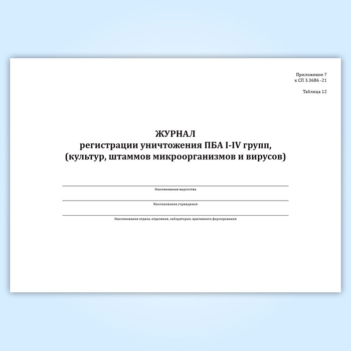 Журнал регистрации уничтожения ПБА I-IV групп, (культур, штаммов микроорганизмов и вирусов) в Ачинске купить