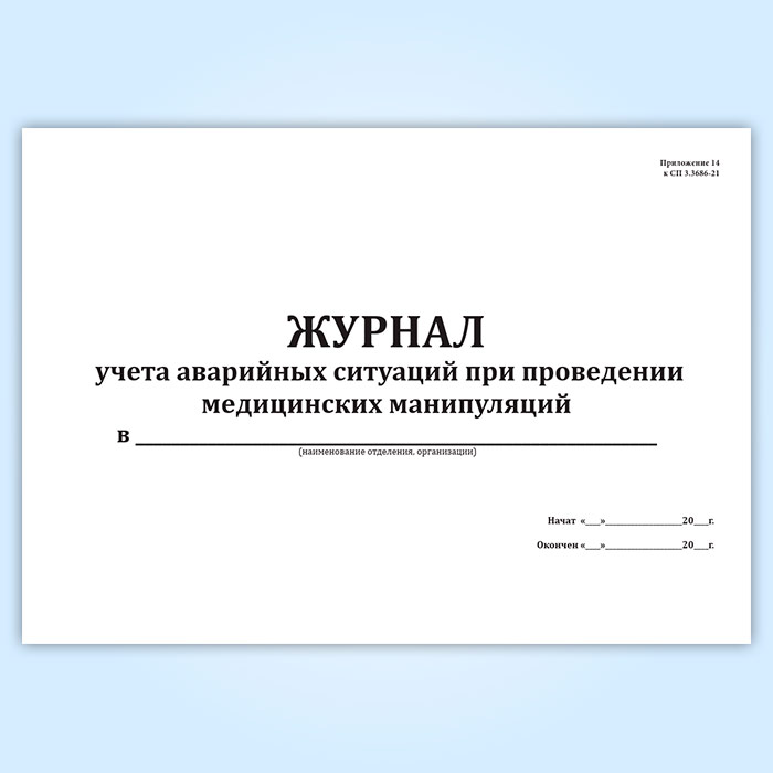 Журнал учета аварийных ситуаций при проведении медицинских манипуляций (СанПиН 3.3686-21) в Ачинске купить