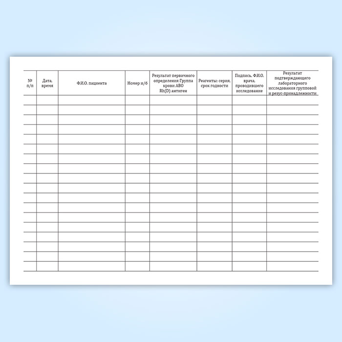 Журнал регистрации первичного определения группы крови в Ачинске купить