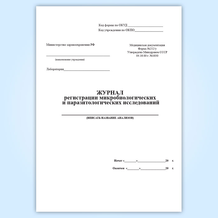 Журнал регистрации микробиологических и паразитологических исследований (форма 252/у) в Ачинске купить