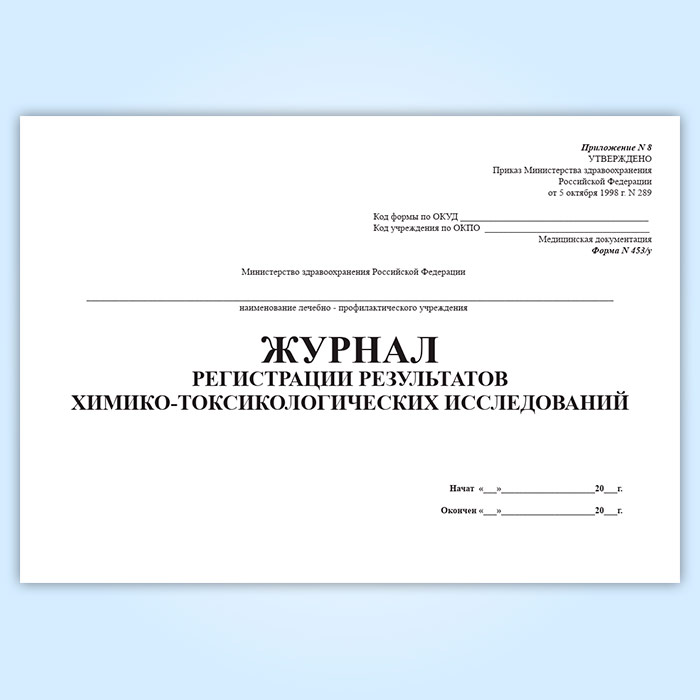 Журнал регистрации результатов химико-токсикологических исследований (форма 453у-06) в Ачинске купить