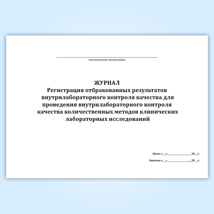 Журнал «Регистрация отбракованных результатов внутрилабораторного контроля качества для проведения внутрилабораторного контроля качества количественных методов клинических лабораторных исследований» в Ачинске купить