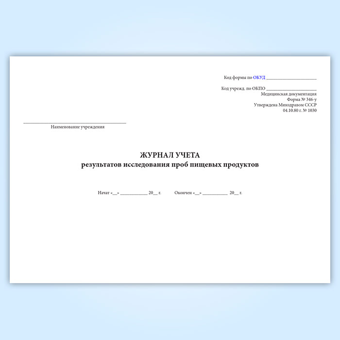 Журнал учета результатов исследования проб пищевых продуктов (форма 346/у) в Ачинске купить