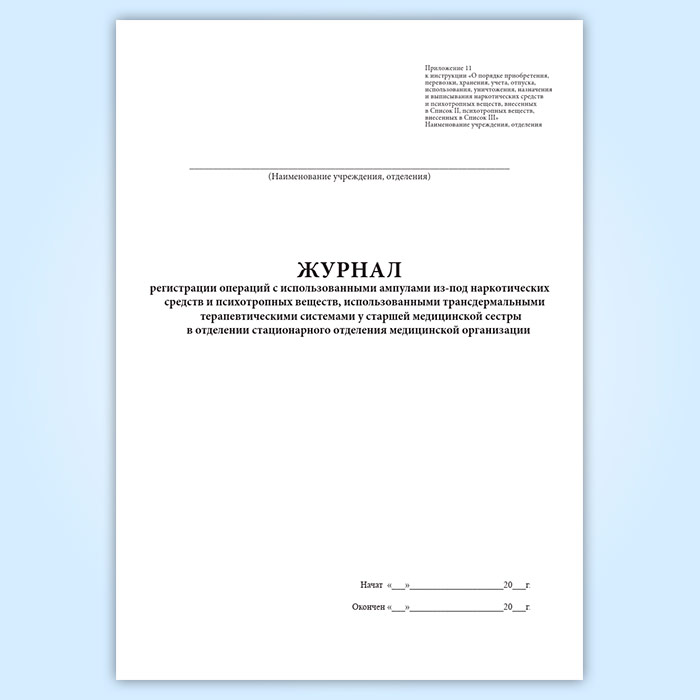 Журнал регистрации операций с использованными ампулами из-под наркотических средств и психотропных веществ, использованными трансдермальными терапевтическими системами у старшей медицинской сестры в отделении стационарного отделения медицинской организации в Ачинске купить