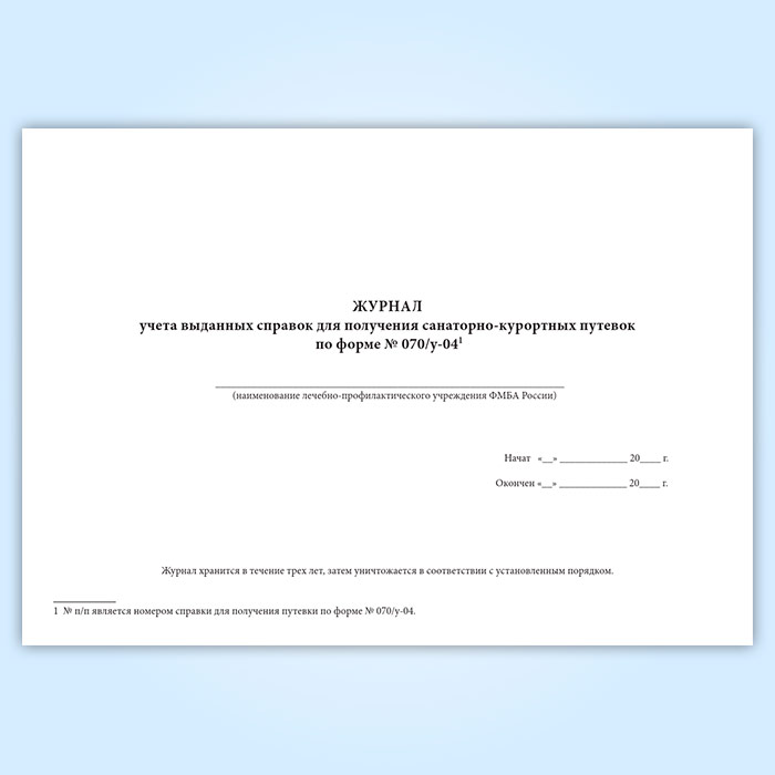 Журнал учета выданных справок для получения санаторно-курортных путевок (форма № 070/у-04) в Ачинске купить
