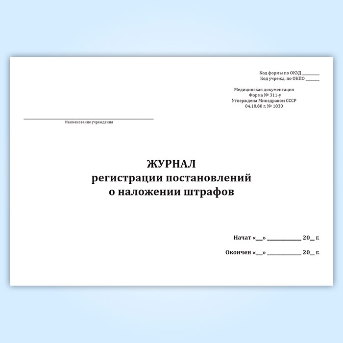 Журнал регистрации постановлений о наложении штрафов (форма 311-у) в Ачинске купить