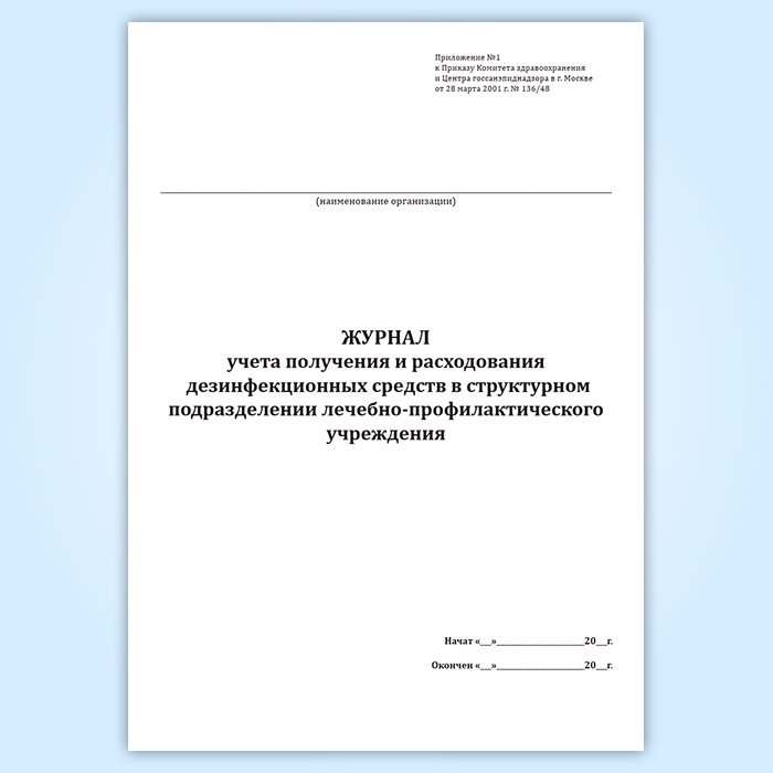 Журнал учета получения и расходования дезинфекционных средств в структурном подразделении лечебно-профилактического учреждения в Ачинске купить