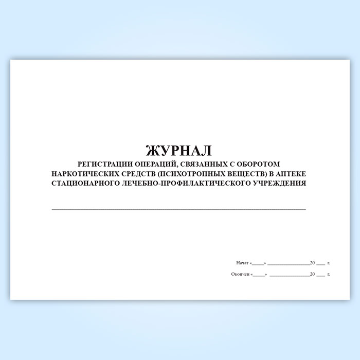 Журнал регистрации операций, связанных с оборотом наркотических средств и психотропных веществ в аптеке медицинской организации в Ачинске купить