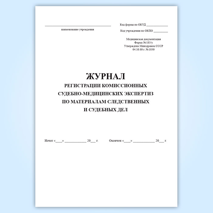 Журнал регистрации комиссионных судебно-медицинских экспертиз по материалам следственных и судебных дел (форма 183/у) в Ачинске купить