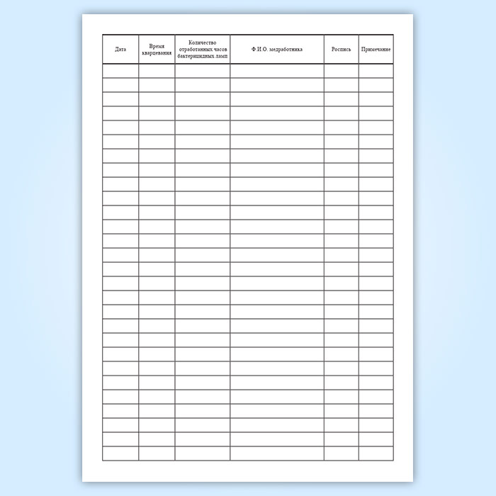 Журнал регистрации и контроля работы бактерицидной лампы в Ачинске купить