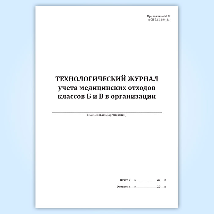 Технологический журнал учета медицинских отходов классов Б и В в организации в Ачинске купить