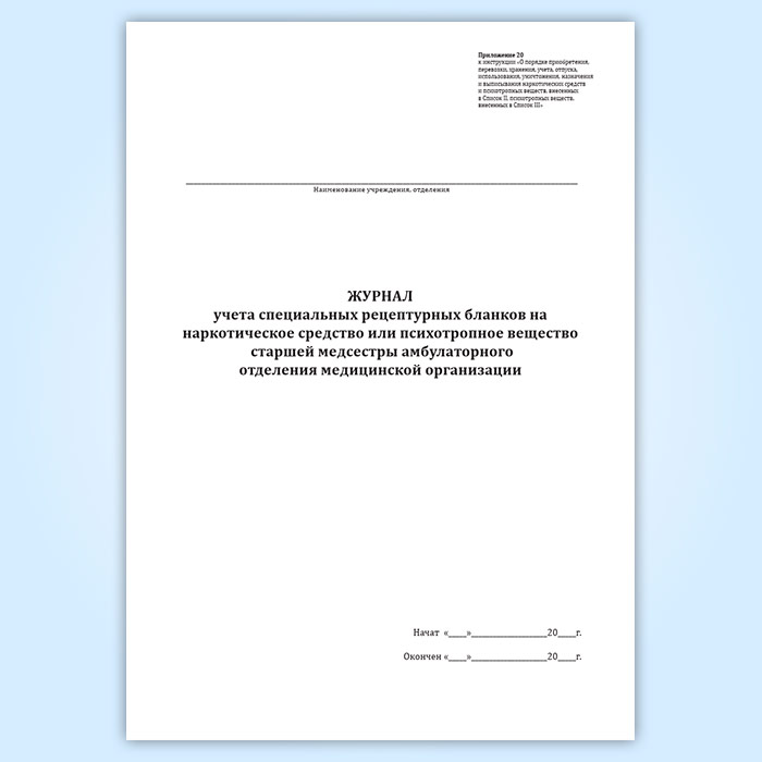 Журнал учета специальных рецептурных бланков на наркотическое средство или психотропное вещество старшей медсестры амбулаторного отделения медицинской организации в Ачинске купить