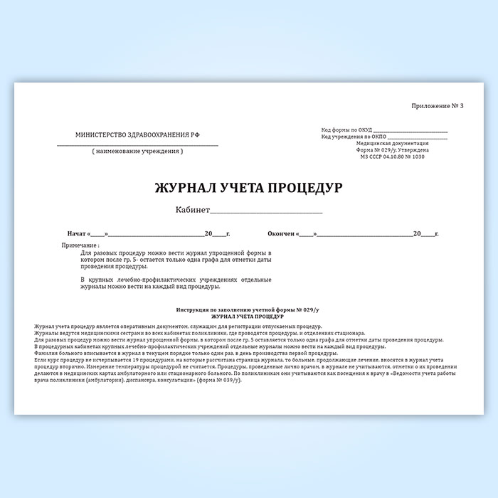 Журнал учета процедур (форма № 029/у) в Ачинске купить