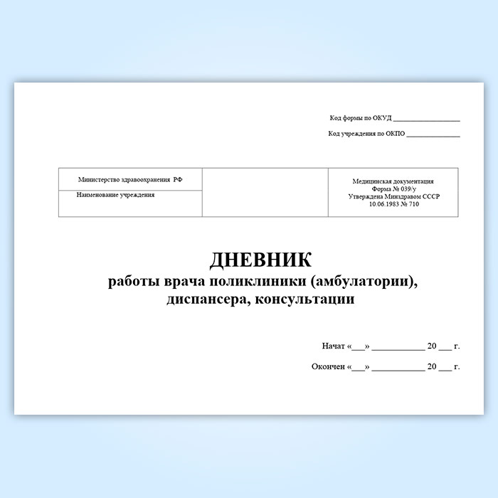 Дневник работы врача поликлиники (амбулатории), диспансера, консультации (форма 039/у) в Ачинске купить