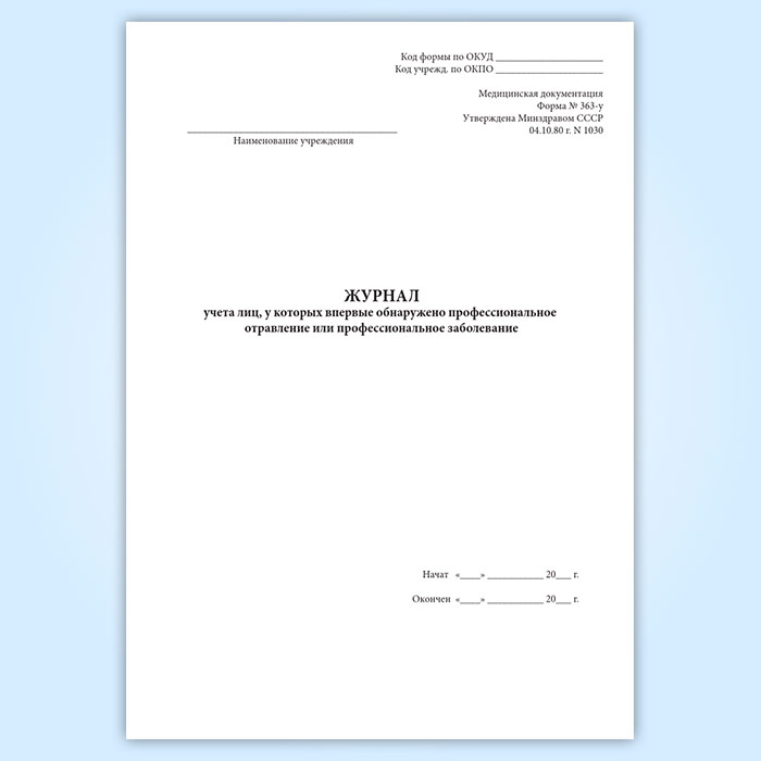 Журнал учета лиц, у которых впервые обнаружено профессиональное отравление или профессиональное заболевание (форма 363-у) в Ачинске купить