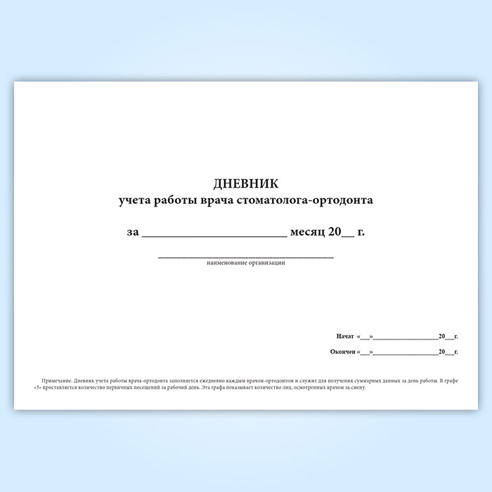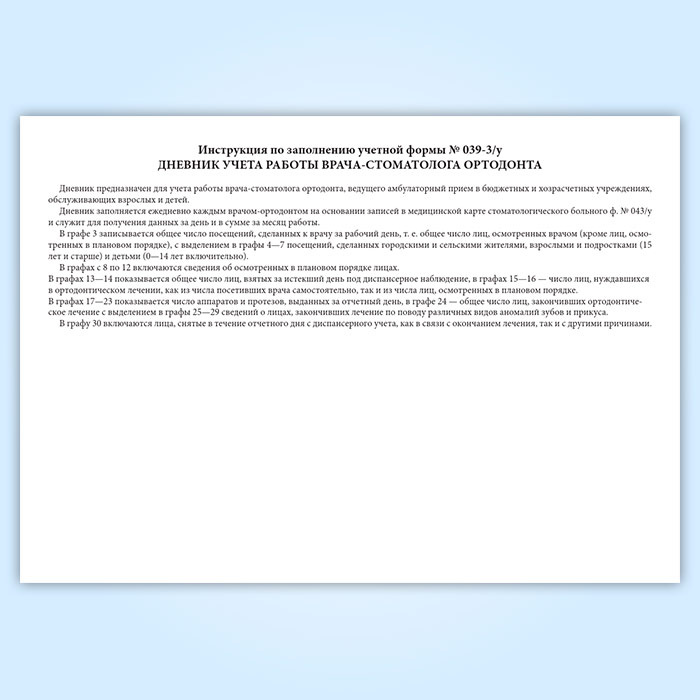 Дневник учета работы врача стоматолога-ортодонта (форма 039-3у) в Ачинске купить