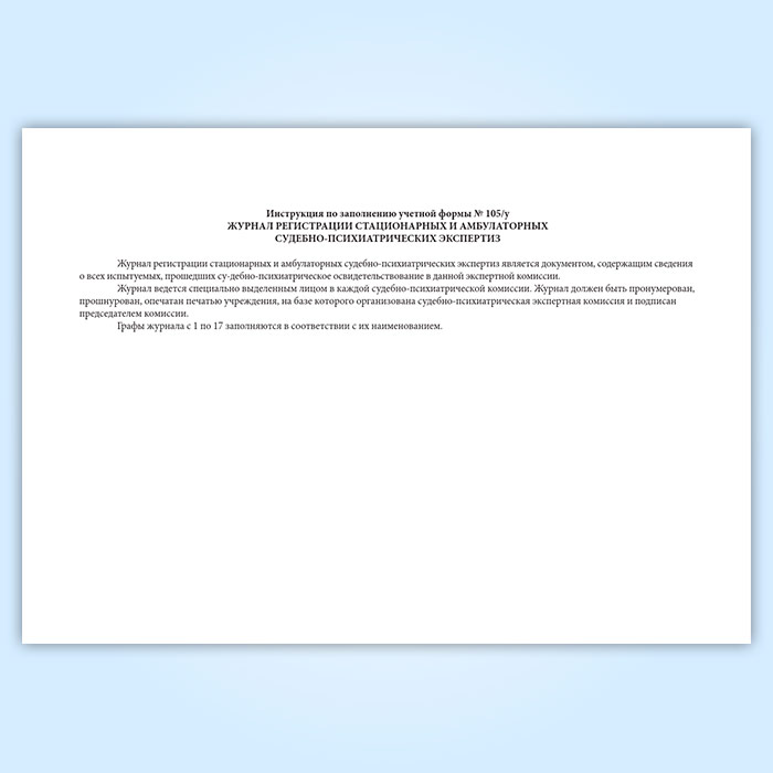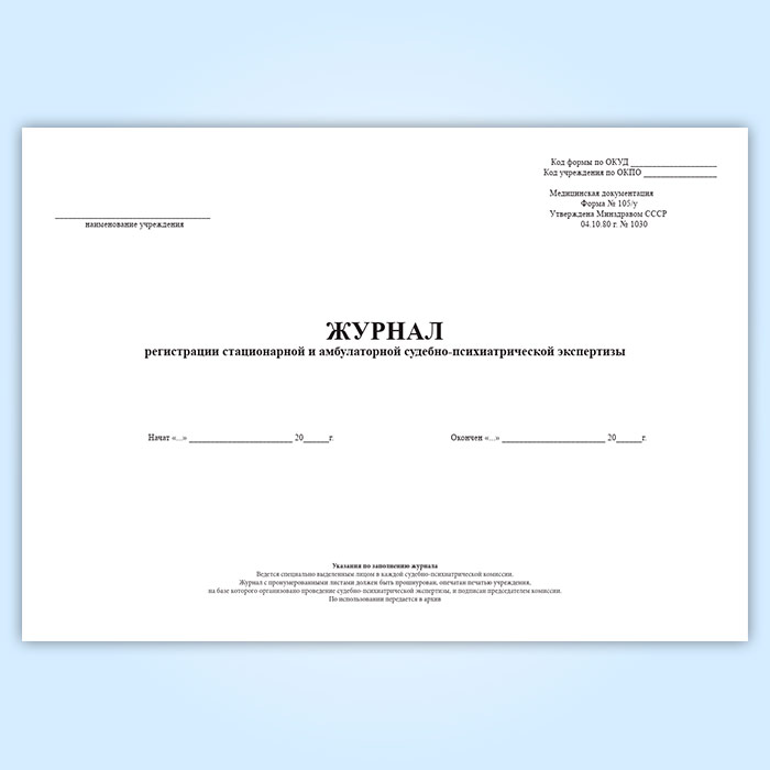 Журнал регистрации стационарной и амбулаторной судебно-психиатрической экспертизы (форма 105/у) в Ачинске купить