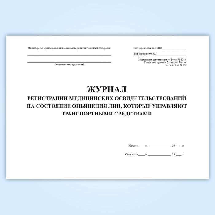 Журнал регистрации медицинских освидетельствований на состояние опьянения лиц, которые управляют транспортными средствами (форма 304/у) в Ачинске купить