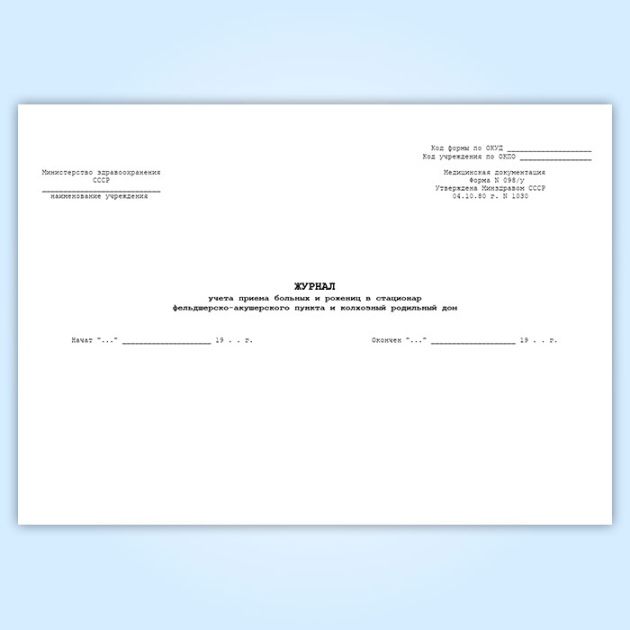 Журнал учета приема больных и рожениц в стационар фельдшерско-акушерского пункта, колхозного родильного дома (форма 098/у) в Ачинске купить