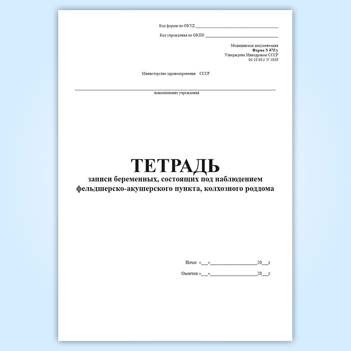 Тетрадь записи беременных, состоящих под наблюдением ФАП, колхозного роддома (форма 075/у) в Ачинске купить
