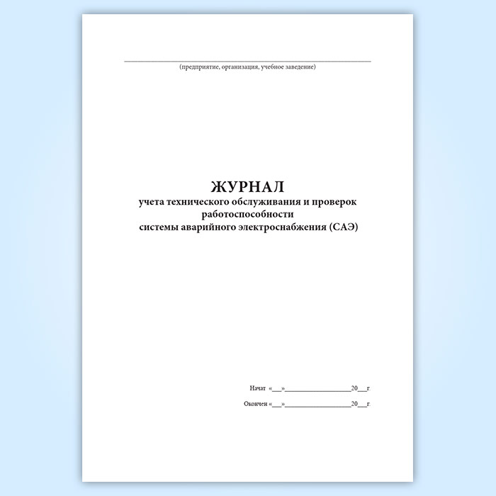 Журнал учета технического обслуживания и проверок работоспособности системы аварийного электроснабжения (САЭ) в Ачинске купить
