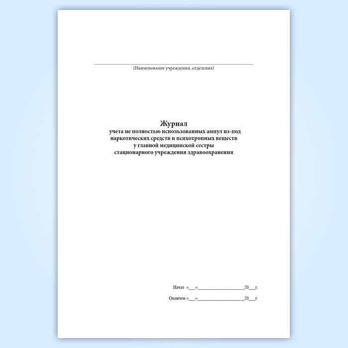 Журнал учета не полностью использованных ампул из-под наркотических средств и психотропных веществ у главной медицинской сестры стационарного учреждения здравоохранения в Ачинске купить