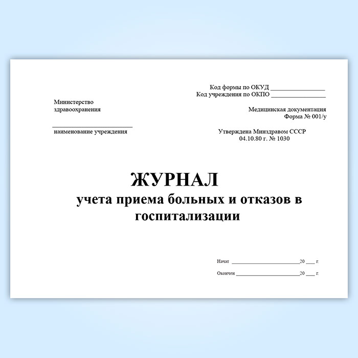 Журнал учета приема больных и отказов в госпитализации (форма 001/у) в Ачинске купить