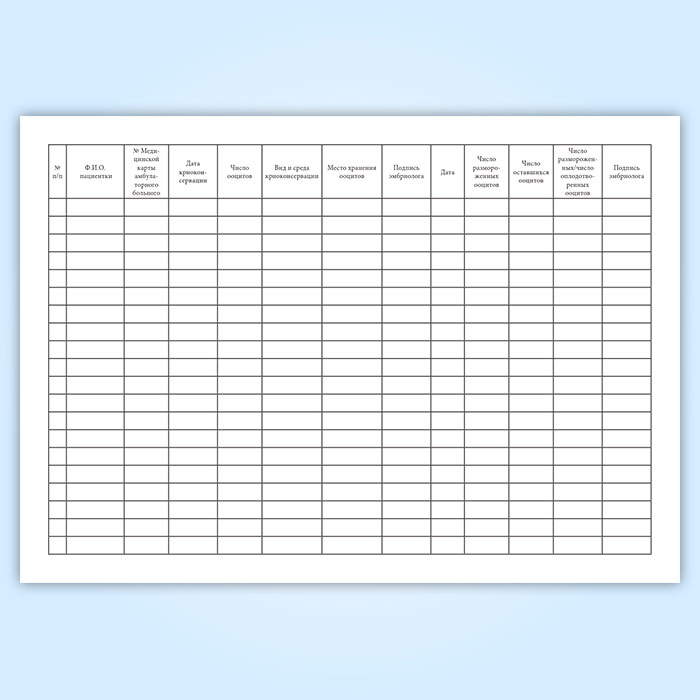 Журнал учета, хранения и использования криоконсервированных ооцитов пациенток в Ачинске купить